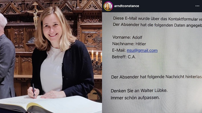 Arndt, pazartesi günü aldığı bir e-postayı kamuoyuyla paylaşarak “Yılmıyorum, suç duyurusunda bulundum” dedi. Gönderici ismi olarak Adolf Hitler, e-posta adresi ise dikkat çekici şekilde nsu@gmail.com olan mesajda şu ifadeler yer aldı: “Walter Lübke’yi hatırlayın. Her zaman dikkatli olun.” E-postada, mültecilere yardım etmesiyle tanınan ve 2019’da bir aşırı sağcı tarafından öldürülen eski Kassel Bölge Valisi Walter Lübcke’nin soyadının yanlış yazılması dikkati çekti.