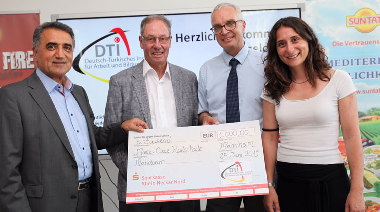 DTI Yönetim Kurulu Başkanı Mustafa Baklan’ın (SUNTAT) ev sahipliğinde gerçekleştirilen imza töreninde, MCRS Okul Müdürü Hendrik Tzschaschel’a 1.000 Euro’luk bir çek verildi. DTI Yönetim Kurulu Başkan Yardımcısı Prof. Dr. Egle, “Marie-Curie-Realschule’nin, DTI’nin özellikle Mannheim Neckarstadt-West’te geliştirmek istediği projeler için önemli bir ortak” olduğunu söyledi.