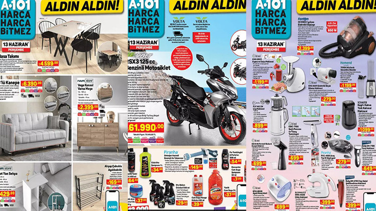 A101 aktüel 13 Haziran 2024 kataloğu yayımlandı. A101'de bu hafta; Schafer Keyf-i Kahve Türk Kahve Makinesi 1.099 TL, Kiwi Kıyma ve Salça Makinesi 1.199 TL, Kiwi Elektrikli Bıçak Bileme Makinesi 279 TL, Kiwi Portatif Buharlı Kırışık Giderici 699 TL, Revolt RSX3 125cc Benzinli Motosiklet 61.990 TL, Taç Bella Basık Döküm Tencere 26 cm 599 TL'den satışta olacak. İşte, a101 aktüel ürünler kataloğu 13 Haziran 2024 Perşembe!