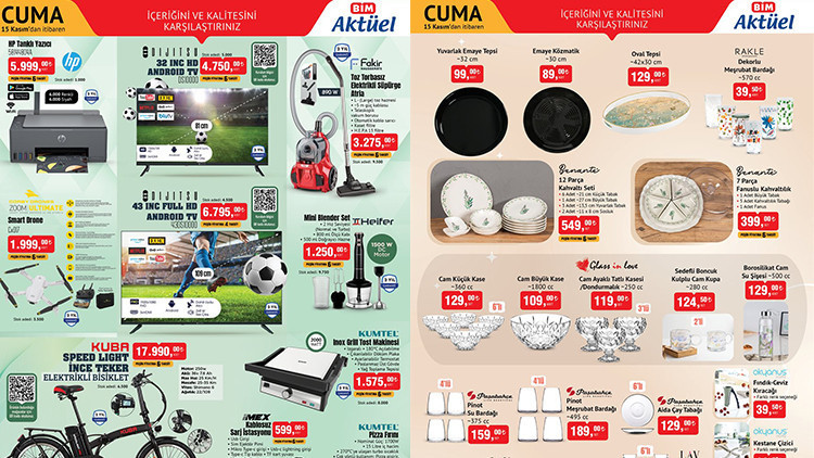 Bim aktüel 15 Kasım 2024 kataloğu içerisinde; 100 cm pelüş zürafa 479 TL, oduncu gömlek çeşitleri 249 TL, çamaşır makinesi üzeri raf/organizer 699 TL, deterjan hazneli mop 419 TL, hazneli temizlik fırçası 129 TL, kalorifer peteği fırçası 34,50 TL, 12 parça kahvaltı seti 549 TL, elektrikli bisiklet 17.990 TL, toz torbasız elektrikli süpürge 3.275 TL, şarjlı baharat öğütücü 579 TL, air fryer cam yaĞ spreyi 75 TL'den satışta olacak. Peki, bim'de bu hafta cuma neler var? İşte, bim aktüel ürünler kataloğu 15 KASIM kataloğu ve tek tek fiyat listesi...