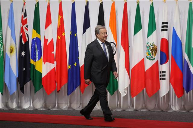 Guterres, G20 Zirvesi'ne katılan liderlere hitaben kaleme aldığı mektupta, G20 ülkelerine, küresel finansal güvenlik ağını güçlendirmek ve küresel ekonominin direncini artırmak için adil ve istikrarlı reformlar konusunda harekete geçme ve "eşit büyümeyi teşvik etme" çağrısı yaptı.