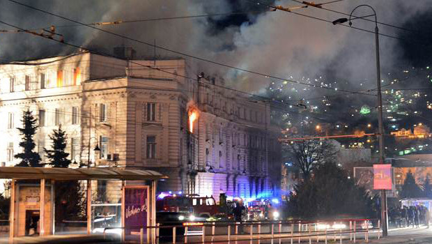 Dün akşam karanlık çöktüğünde başkent Saraybosna’da kaos hakimdi. Binalar, araçlar ateşe verilmiş, tam teçhizatlı polis, cop ve gözyaşartıcı bombayla eylemcileri dağıtmaya çalışıyordu. Ülke çapında eylemlerde yaklaşık 200 kişi yaralandı.