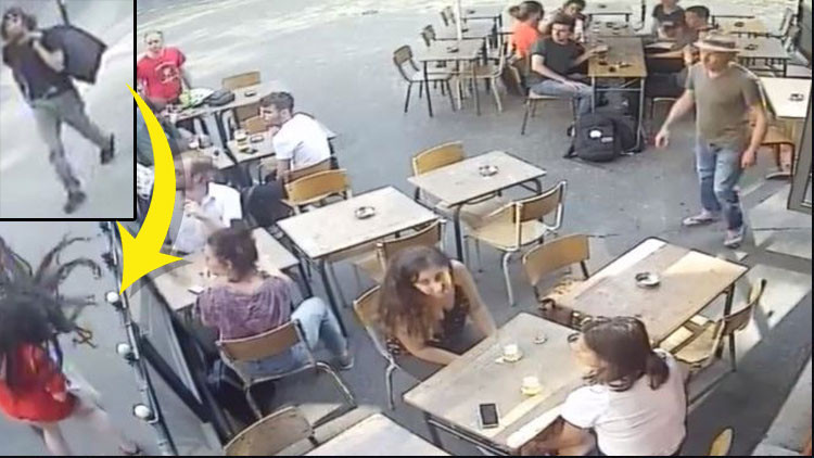 Kafenin güvenlik kamerasında bu andan sonra adamın eline bir kül tablası alarak fırlattığı görülüyor.