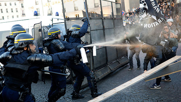 Fransız polisi, Bastille Meydanı'nda barikatı zorlayan protestoculara karşı gaz bombası kullanıp eylemcileri dağıtırken, eylemci bir kadının da yaralandığı iddia edildi.