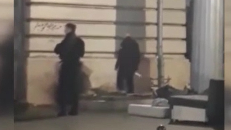 Görüntüde, sığınmacıların kaldığı bir kaldırımdaki duvar dibine giden iki polisten birinin etraftaki battaniye ve kişisel eşyalara gaz sıktığı görülüyor. Diğer polisin ise etrafı kontrol ettiği kameraya yansıyor.
