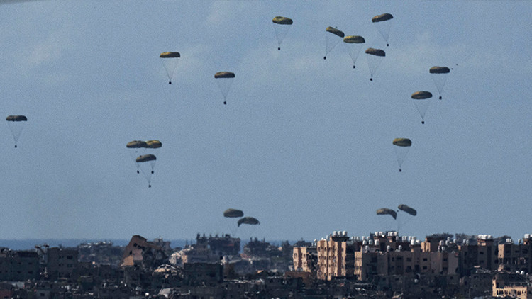 Sosyal medyada yayınlanan videoda, paraşütlerle asılı duran büyük bir yardım paketi kümesinin gökyüzünde sürüklendiği, ancak paraşütü tam olarak açılmamış bir paketin diğerlerinden çok daha hızlı düştüğü görülüyor. Gazze'deki insani durum her geçen gün daha da kötüleşirken İsrail bölgeye yardım girişine izin vermiyor. Çeşitli ülkeler ise açlık tehlikesi ile boğuşan sivil halka havadan gıda ulaştırmaya çalışıyor.