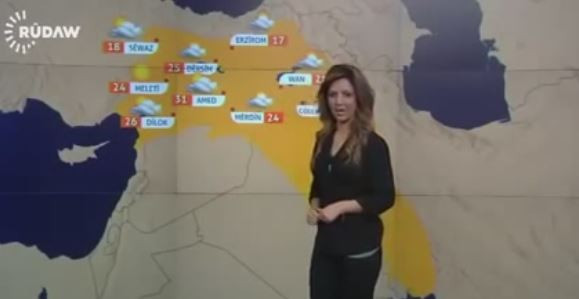 Irak Kürt Bölgesel Yönetimi (IKBY) Başkanı Mesud Barzani'ye yakınlığıyla bilinen Rudaw televizyon kanalı hava durumu sunarken ekrana yansıtıığı haritada Türkiye'nin doğusunu 'Kürdistan' olarak veriyor.