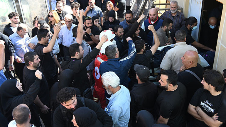 Saldırıda hayatını kaybeden iki gazetecinin naaşı, cenaze işlemleri için Beyrut'taki El Zehraa Hastanesi'ne getirildi. Yakınlarını kaybedenler üzüntü yaşadı.