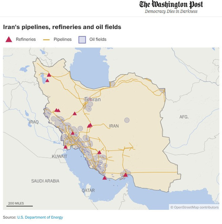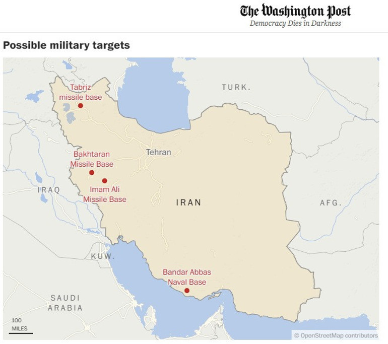 ABD medyasının önde gelen kuruluşlarından Washing Post, İsrail'in İran'a düzenlemeyi planladığı saldırıların hedeflerini harita gösterdi. Nükleer tesislerin, petrol rafinerilerinin ve askeri tesislerin yer aldığı haritayı paylaşan Washington Post, uzman görüşlerine yer verdi.