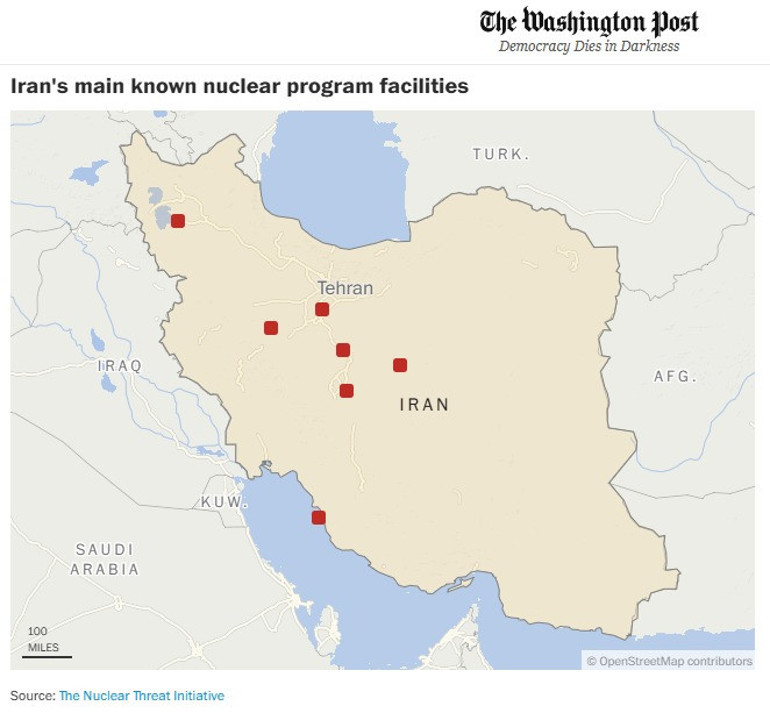 Uluslararası Atom Enerjisi Kurumu'nun "İran'ın Tahran'da ve İsfahan'da nükleer zenginleştirme tesisi bulunuyor" sözlerini aktaran Washington Post, "yer altında bulunması tesisleri zor bir hedef haline getiriyor" dedi.