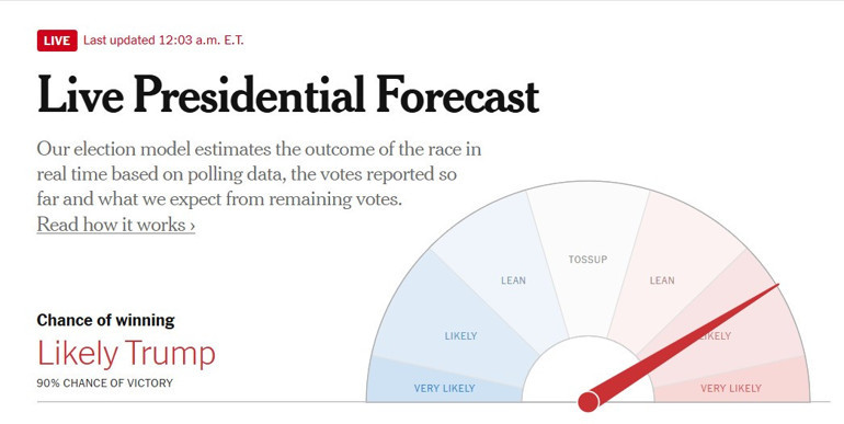 ABD'deki saat dilimlerinin farklı olması nedeni ile doğu yakasında oyların sayımı tamamlanmışken, Alaska ve Hawaii gibi eyaletlerde seçmenler hala sandık başında olabilir. Bu nedenle seçim sonucunun belli olacağı zamanı tahmin etmek zor.
