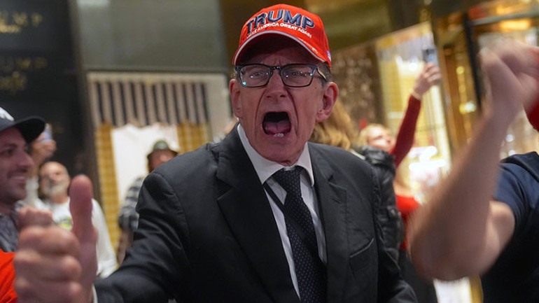 Trump destekçisi bir grup, Trump Tower ve dev ekranlardan seçim sonuçlarının canlı yayınlandığı Rockefeller Center'da sevinç gösterisinde bulundu.