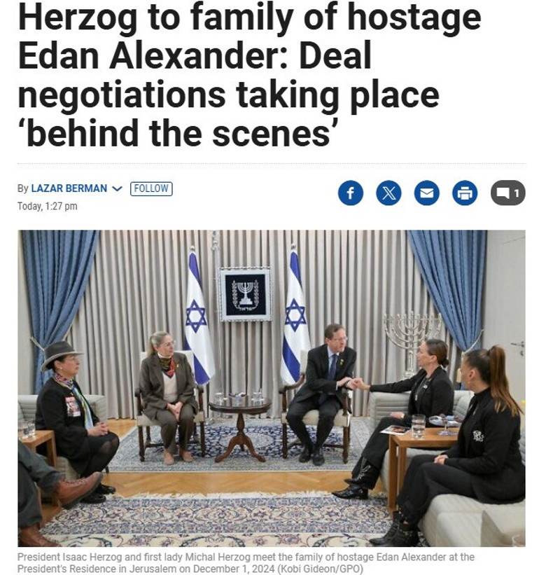 Cumhurbaşkanı Herzog, ABD-İsrail vatandaşı Edan'ın ailesine, Hamas ile "rehineleri eve getirecek bir anlaşma yapmanın zamanı geldi" ifadesinde bulundu.