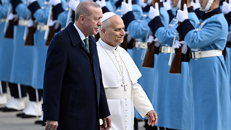 Cumhurbaşkanı Recep Tayyip Erdoğan, Türkiye'yi ziyaret eden Vatikan Devlet Başkanı Papa 14. Leo'yu resmi törenle karşıladı.