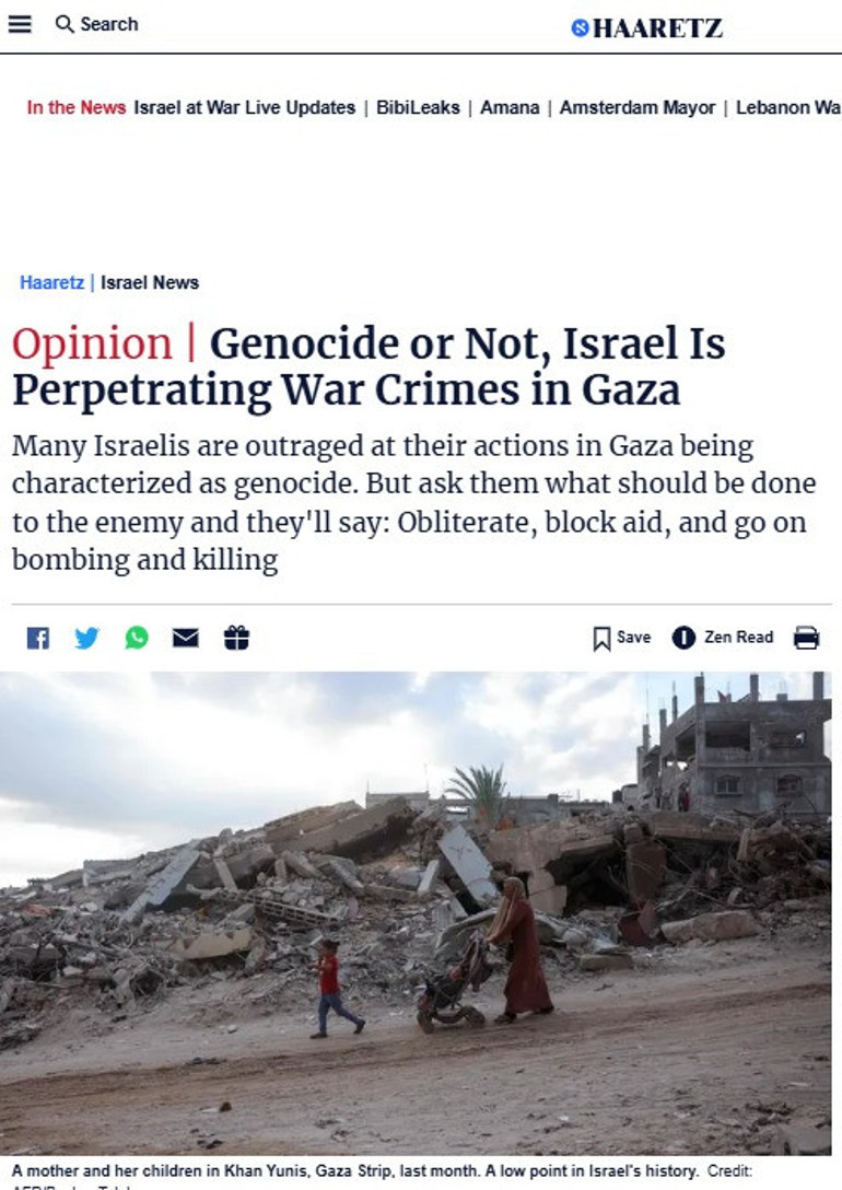 Netanyahu hükümetine yakın TV yorumcusu Amit Segal'in Gazze'deki İsrail saldırılarına ilişkin söylediği "Dünyanın büyük bir bölümünde buna 'soykırım' denir" sözlerinin hatırladıldığı analizde, İsrail'in Gazze'de "etnik temizlik" ve "toplu katliam" yaptığının altı çizildi.