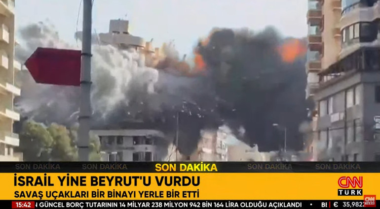 İsrail'in saldırısı sebebiyle Beyrut'un güneyinde şiddetli bir patlama meydana geldi. Patlama sonucunda hedef alınan bina çöktü.
