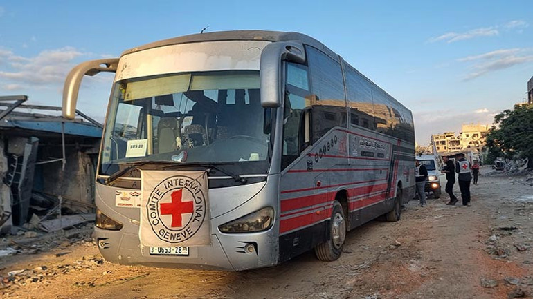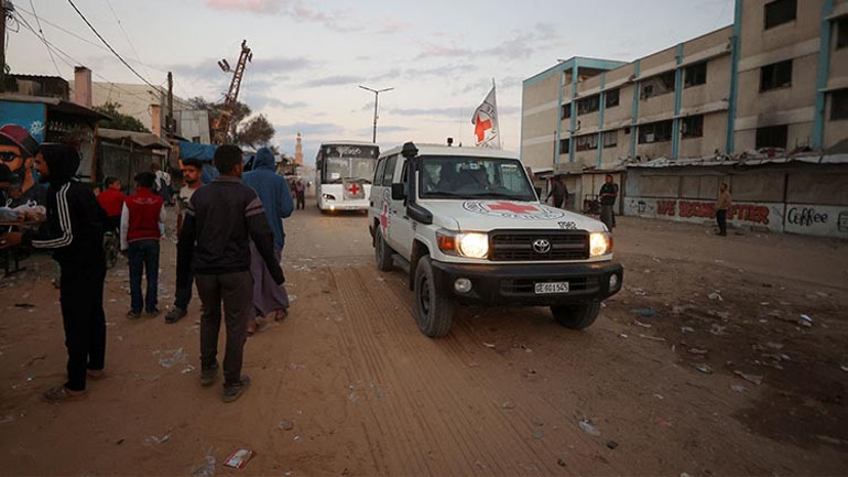 İsrail devlet televizyonu KAN'ın haberine göre, Hamas İsrailli esirleri Gazze Şeridi'nin güneyindeki Han Yunus'ta Kızılhaç heyetine teslim etti.