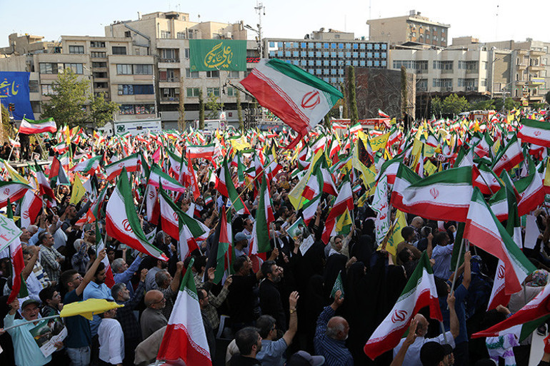 İran devlet televizyonuna göre, Tahran Üniversitesi önünde düzenlenen törene binlerce kişi katıldı.