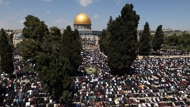Filistinliler Ramazan ayının son cumasında Müslümanların ilk kıblesi Mescid-i Aksa’ya akın etti. Kudüs İslami Vakıflar Dairesi'ne göre İsrail güçlerinin uyguladığı katı tedbirlere rağmen 250 bin kişi, Ramazan ayının dördüncü ve son cuma namazını Mescid-i Aksa'da kıldı.