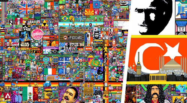 TÜRK BAYRAĞI, ATATÜRK PORTRESİ, TB-2, BARIŞ MANÇO...Türk internet kullanıcıları ve Türk Twitch yayıncıları da bu furyaya ayak uydurdu ve İnternet tarihinin en büyük organizasyonlarından olan Reddit Place'a damgasını vurdu.