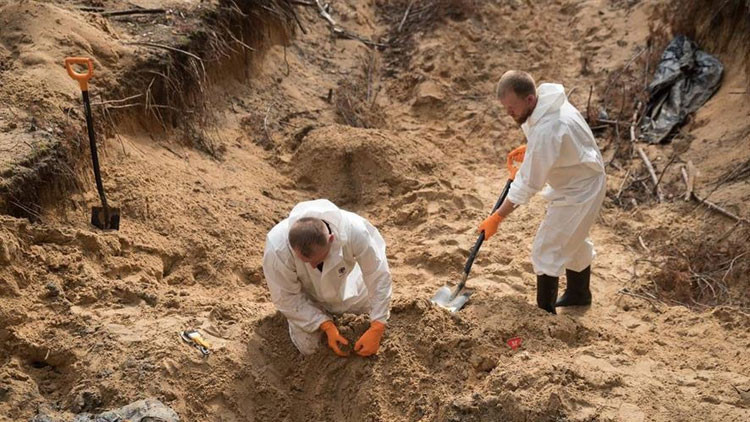 Ukrayna Devlet Başkanı Volodimir Zelenski dün yaptığı açıklamada, İzyum kentinin Rus ordusundan geri alınmasının ardından, toplu mezar bulunduğunu ve detayları araştırdıklarını duyurmuştu. İzyum'da, Birleşmiş Milletler (BM) gözlem heyeti de dahil olmak üzere Ukraynalı uzman ekipler tarafından yapılan araştırmalarda ormanlık alanda çok sayıda kişinin cansız bedenine ulaşıldı.