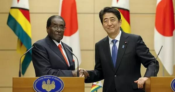 Abe, iki ülke arasındaki ilişkileri güçlendirmek için Japonya’ya davet ettiği Mugabe ile birlikte basının karşısına geçti.