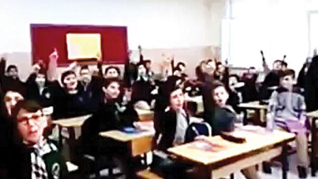 Sınıfta çekilen 17 saniyelik videoda öğrencilerin, “Elimizde Kuran, kalbimizde iman, Müslümanız Müslüman, yaşasın İslam. Tekbir Allahuekber” ifadeleri yer aldı.