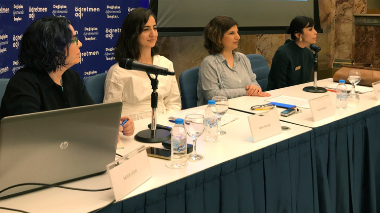 Rapor bulgularının paylaşılmasının ardından, Öğretmen Ağı’nın çalışmalarına gönüllü olarak dahil olmanın yanı sıra, Ağ’da geliştirilen araçları uygulamak ve çevresiyle paylaşmak için inisiyatif alan ve harekete geçen ‘Değişim Elçisi’ öğretmenler Şirin Piya Giyik ve Mine Aksar da birer konuşma yaptı.