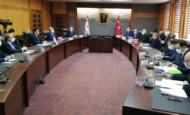Ticaret Bakanı Pekcan, görüşme öncesi yaptığı açıklamada Kıbrıs'ın ekonomisinin pandemiden ciddi oranda etkilendiğini belirterek, "Türkiye, Kıbrıs’ın yanında olmaya devam edecek. STK başkanlarımızla beraber katıldığımız toplantılarda da gündeme getirdik; Kıbrıs'ın Türkiye'ye 1 milyar dolar ticaret hacmi var. Kıbrıs'ın ihracatında yaklaşık yüzde 60'ı Türkiye'ye gerçekleşiyor. Biz Kıbrıs'ın ihracatında ürün çeşitliliğini nasıl arttırabiliriz, nasıl yardımcı olabiliriz ve Kıbrıs'ın hem ürün çeşitliliği açısından hem ülke açısından ihracatının daha fazla arttırılması için beraber neler yapabiliriz onları görüştük" dedi.
