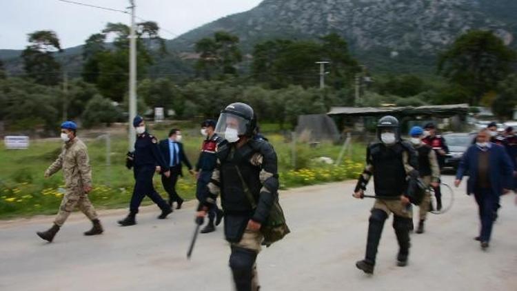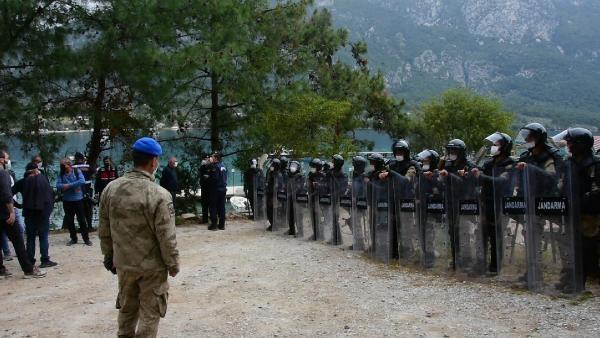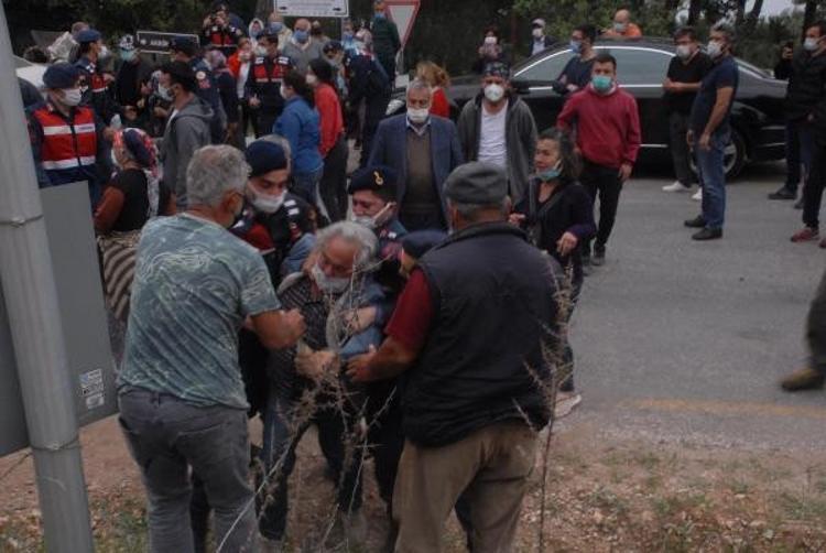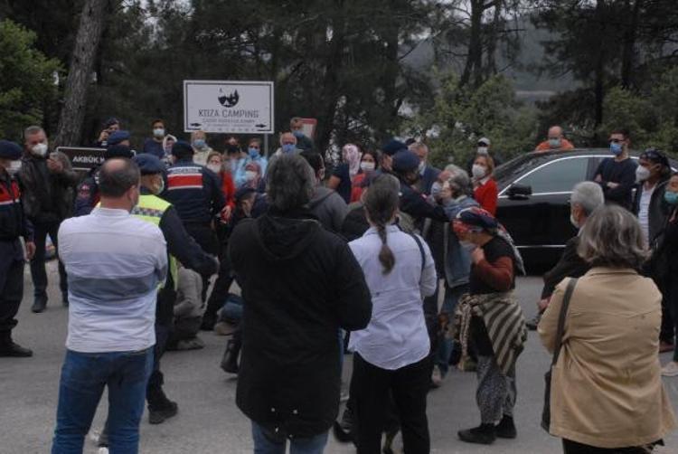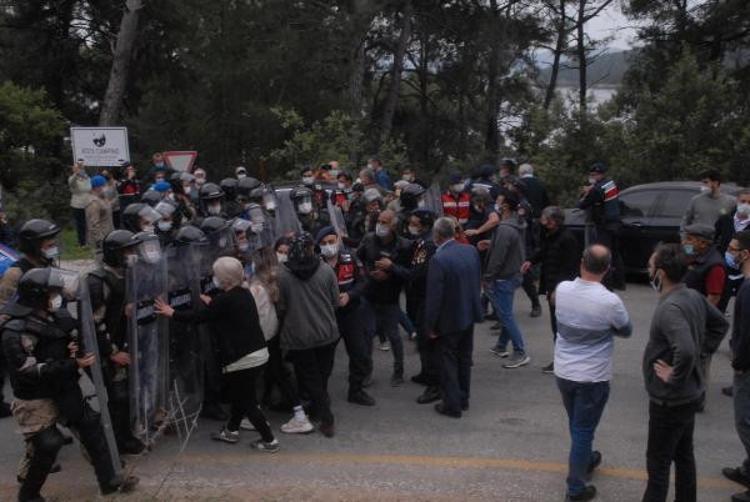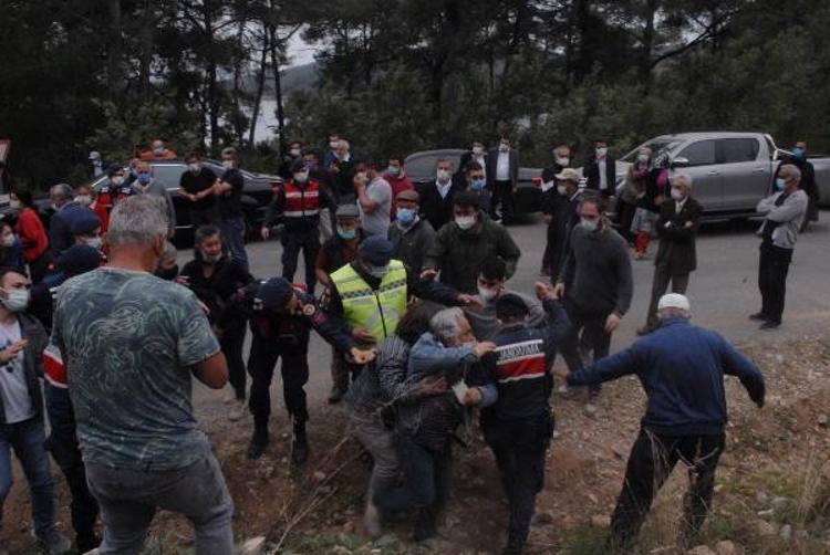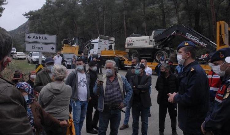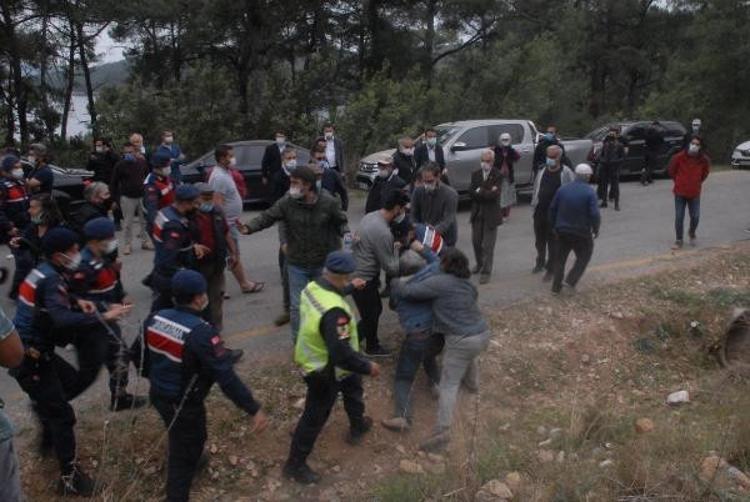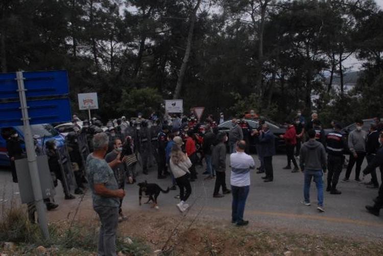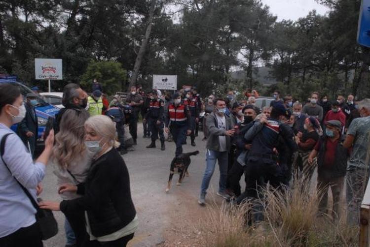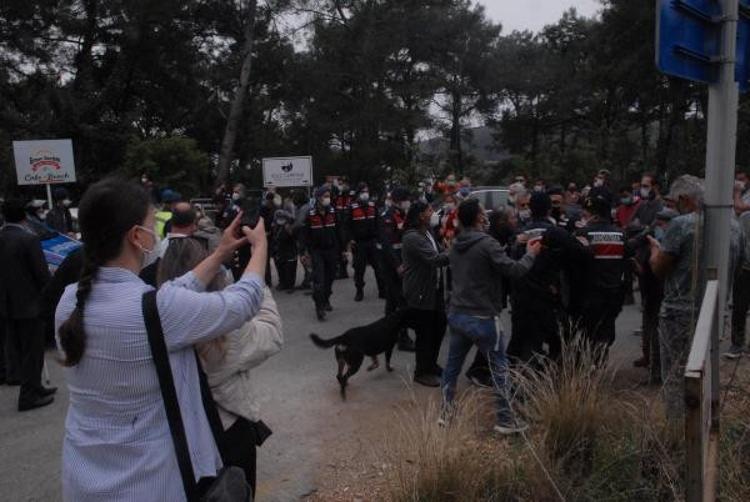 Muğla'nın Gökova Körfezi'nde dünyaca ünlü Akbük Koyu'nda aralarında pansiyon, restoran ve konutların bulunduğu 33 yapının yıkım çalışmaları öncesi gerginlik çıktı. Bina sahipleri yolu kapatarak oturma eylemi yaparken jandarma ile aralarında arbede yaşandı. Yolun açılmasının ardından iş makineleri alana giriş yaptı.