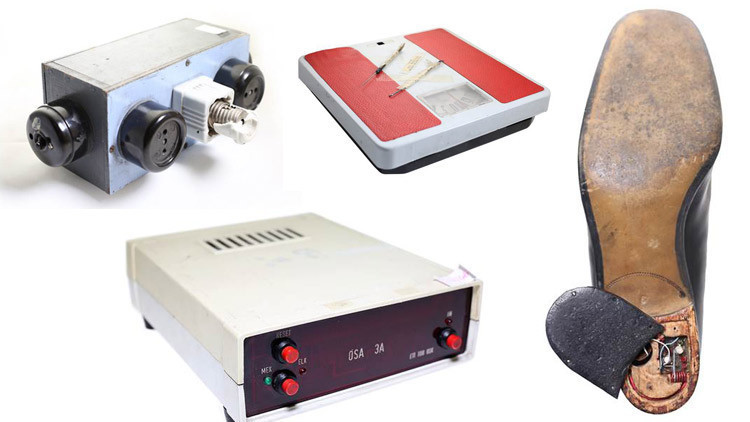MİT'in sanal müzesinde göze çarpan casusluk malzemelerinden biri de topuklu bir erkek ayakkabısı. Türkiye aleyhine casusluk faaliyetinde bulunan bir kişiyi yakalayan MİT personeli yaptıkları incelemede, ayakkabısının topuğuna yerleştirilmiş gizli bir mikrofon tespit etti.