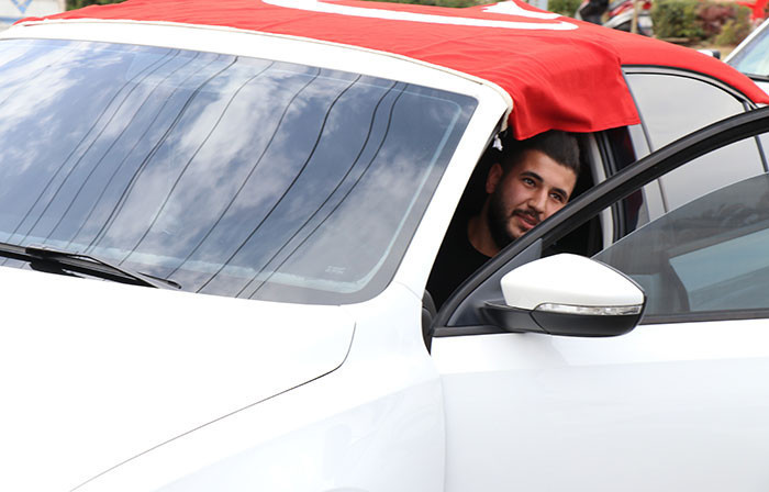4 otomobil sürücüsü bölgeden ayrılırken, bu sırada yoldan geçen trafik polisi, eyleme gelen ve kaldırım kenarında duran modifiyeli ve siyah cam filmli olan 01 ENG 63 plakalı aracın yanında durdu.