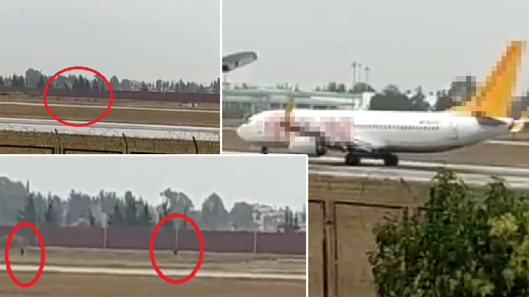 Adana'ya iniş yapan bir uçağın pilotu, önüne çıkan pistteki kalabalığı fark etti. Pilot uçağı aniden durdurdu. Havalimanı güvenlik görevlileri ile polis ekipleri, gruba müdahale bulundu.