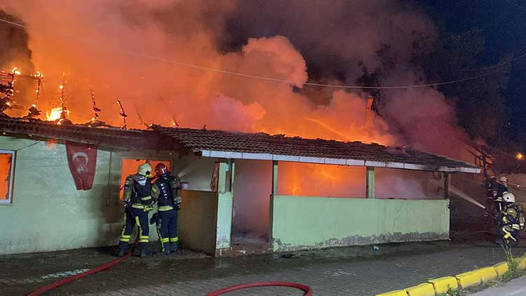 Öte yandan, bir itfaiye erinin yanan evin duvarında bulunan Türk bayrağını aldığı anlar ise kameraya yansıdı. İki evin de kullanılamaz hale geldiği yangınla ilgili soruşturma başlatıldı.