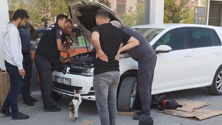 İtfaiye görevlileri, karton sererek girdikleri otomobilin altındaki kedileri, tek tek kurtarmayı başardı. Motor kısmında sıkışan kedileri çıkaran görevliler, onları bir kutuya koydu. Yavrular, daha sonra anneleriyle birlikte itfaiye müdürlüğüne götürüldü.