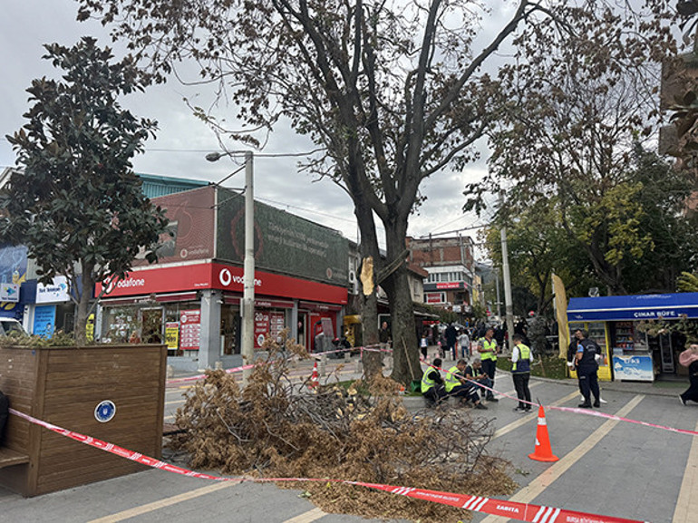 Hasar alan araç çekici yardımıyla bölgeden kaldırıldı. Bu anlar güvenlik kamerasınca kaydedildi. Kent Meydanı'nda ise bir ağacın büyük dalı koparak düştü.