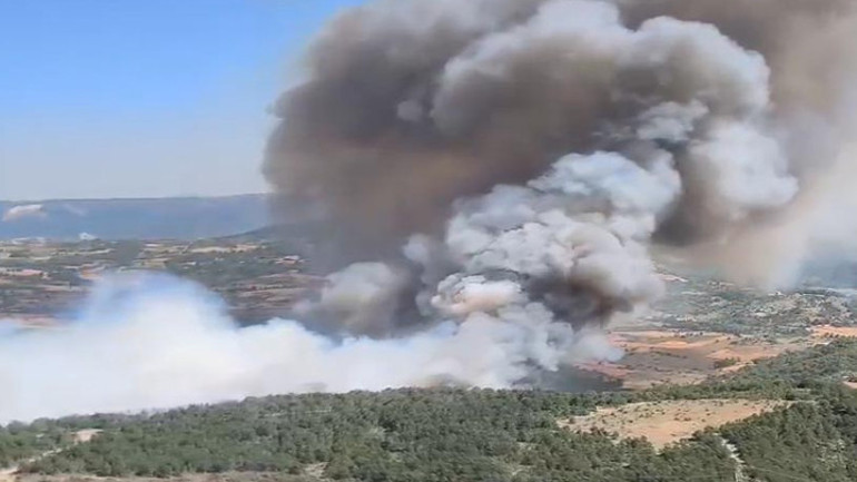 Yangını kontrol altına almak için havadan ve karadan müdahale sürüyor.