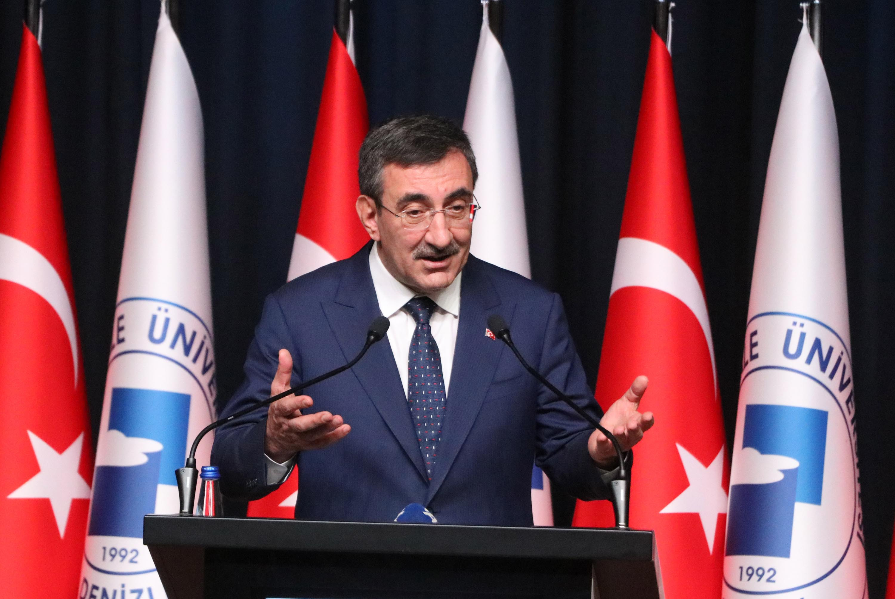 Pamukkale Üniversitesi Kongre ve Kültür Merkezi'nde Pamukkale Üniversitesi Akademik Yılı Açılış töreni düzenlendi. Törene; Cumhurbaşkanı Yardımcısı Cevdet Yılmaz, AK Parti Genel Başkan Yardımcısı Nihat Zeybekci, AK Parti Denizli Milletvekili Şahin Tin, Saadet Partisi Denizli Milletvekili Sema Silkin Ün, Vali Ömer Faruk Coşkun, Pamukkale Üniversitesi Rektörü Prof. Dr. Ahmet Kutluhan ve çok sayıda davetli katıldı. Cumhurbaşkanı Yardımcısı Yılmaz, program öncesinde üniversitenin fuaye alanında yer alan stantlarda, enstitü, fakülte ve yüksekokulların faaliyetlerine ilişkin bilgi aldı, burada sergilenen ürünleri inceledi. Yılmaz daha sonra Filistin Köşesi'nde öğrencilerle sohbet etti.