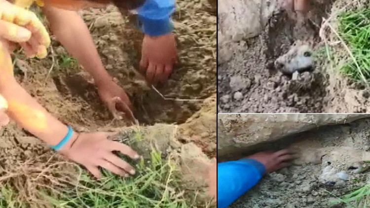 Üzerinin kapatıldığını gördükleri noktadan sesler duyan 4 çocuk, elleriyle toprağı kazınca 4 yavru köpeğe ulaştı. Toprağı hızlı bir şekilde kazan çocuklar, yavru köpekleri elleri ile çıkartarak annelerinin yanına koydu. Çocuklardan biri, saniyelerle yarıştıkları o anları cep telefonu kamerası ile kaydetti. Yavru köpekleri yuvalarındayken diri diri toprağın altında bırakan kişinin ise kimliği bilinmiyor.