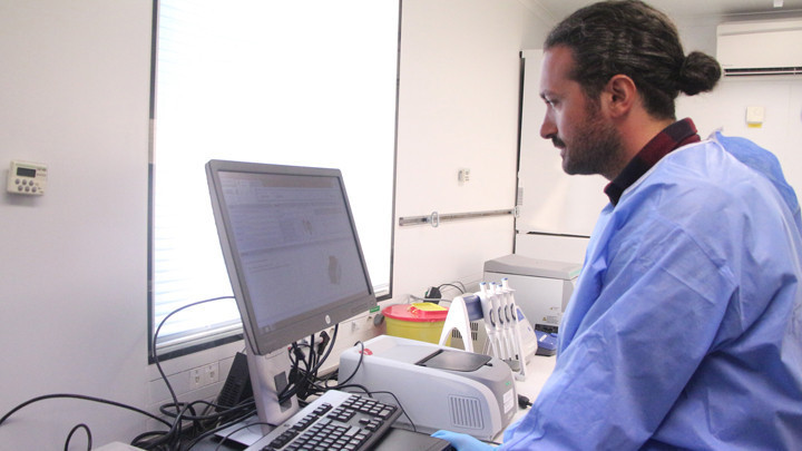 Bakan Koca, Hatay'da bulunan Halk Sağlığı Genel Müdürlüğü'ne ait mobil laboratuvar aracında test çalışması sırasında çekilen görüntüyü de paylaştı.