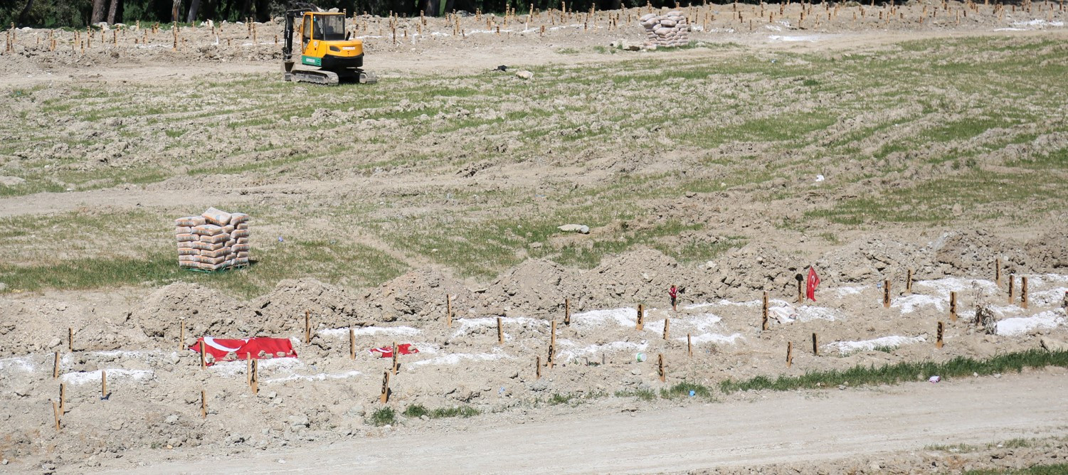 Kahramanmaraş merkezli 11 ilde büyük yıkım ve binlerce can kaybına neden olan depremlerde Hatay'da hayatını kaybedenlerin cenazeleri, kentte çeşitli noktalarda oluşturulan mezarlıklara defnediliyor. AFAD kontrolünde belediyelere ait kepçelerle kazılarak oluşturulan mezarlara, çok sayıda kişi defnedildi.
