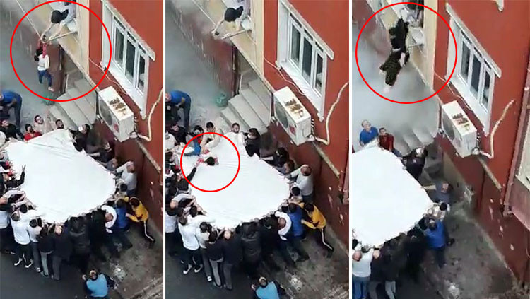 Yangın saat 15.00 sıralarında çıktı. Esenler Turgut Reis Mahallesi'ndeki 5 katlı binanın girişindeki elektrik saatleri yanmaya başladı. Binayı yoğun duman sarınca üst kattakiler mahsur kaldı. Dumanın dairelerine dolduğu birinci kattakiler pencere ve balkonlardan mahalle sakinlerinin açtığı çarşafa atladı. İlk atlayan çocuk çarşafın ardından yere düştü. Daha sonra diğer çocuklar ve anne aşağıya atladı. Yaşanan can pazarı saniye saniye kameraya yansıdı.