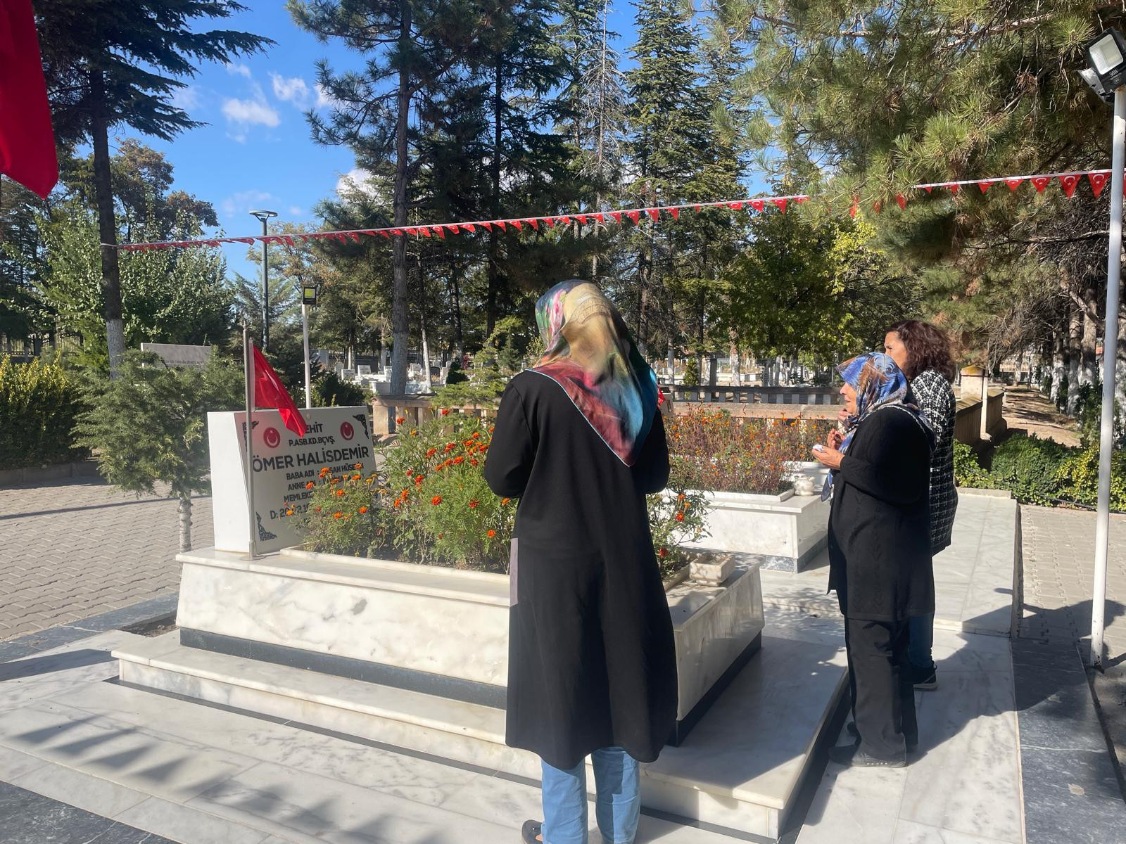 FETÖ elebaşı Fetullah Gülen'in ölümünün ardından çok sayıda kişi, 15 Temmuz 2016'daki darbe girişimi sırasında Ankara'da Özel Kuvvetler Komutanlığı'nda darbeci general Semih Terzi'yi vurduktan sonra şehit edilen Astsubay Kıdemli Başçavuş Ömer Halisdemir'in Çukurkuyu beldesindeki mezarını ziyaret etti. Ziyaretçiler, Halisdemir'in mezarı başında dua okudu. (DHA)