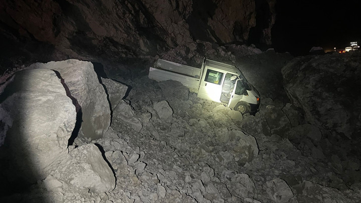 Kent merkezi 20 kilometre uzaklıkta, özel bir firmaya ait taş ocağı mevkiinde dün saat 22.00 sıralarında heyelan meydana geldi. Bölgede etkili olan yağışlı havada yamaçlardan kopan kaya ve toprak yığınları, Hakkari- Çukurca kara yoluna düştü. Bu sırada Hakkari'den Çukurca istikametine giden Zelal Açar (28) yönetimindeki kamyonet, dev kayaların arasında kaldı.