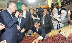 Pazarda alışveriş yapan Erdoğan, çevredekilerle sohbet etti. Başbakan Erdoğan’ın eşi Emine Erdoğan, kızı Sümeyye Erdoğan ile bakan eşleri de pazarı dolaştı. Emine Erdoğan, burada basın mensuplarına organik ürünlerden tüketmelerini önerdi. Emine Erdoğan, torunlarına minyatür çakı aldı. Erdoğan ve beraberindekiler, bu sabah Urumçi’den Pekin’e hareket edecek. Erdoğan, Çin Halk Cumhuriyeti Başbakanı Wen Jiabao ile görüşecek, ardından 2 nükleer anlaşma yapılacak. Çin ve Türkiye, nükleer enerjinin barışçıl amaçlarla kullanılması ve nükleer alanda işbirliği mutabakat zaptına imza atacak. Erdoğan, ikili ve heyetlerarası görüşmelerde Suriye’de yaşananları anlatacak.