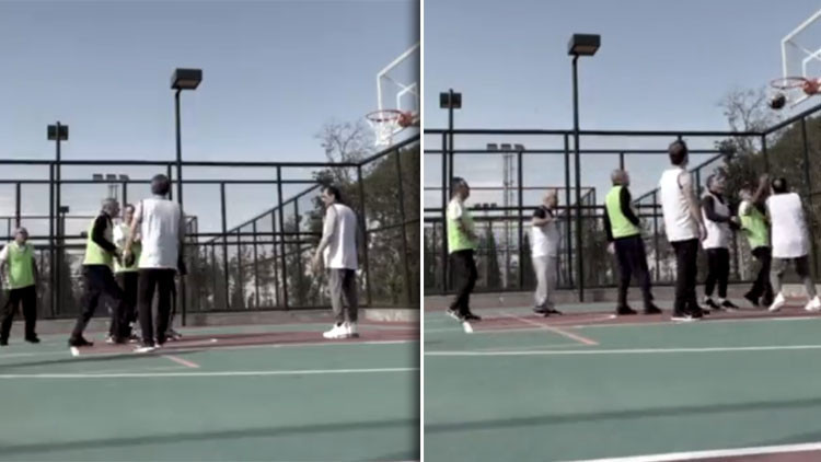 Altun'un paylaşımında, Cumhurbaşkanı Erdoğan'ın basket attığı bir anın görüntüsü yer aldı.