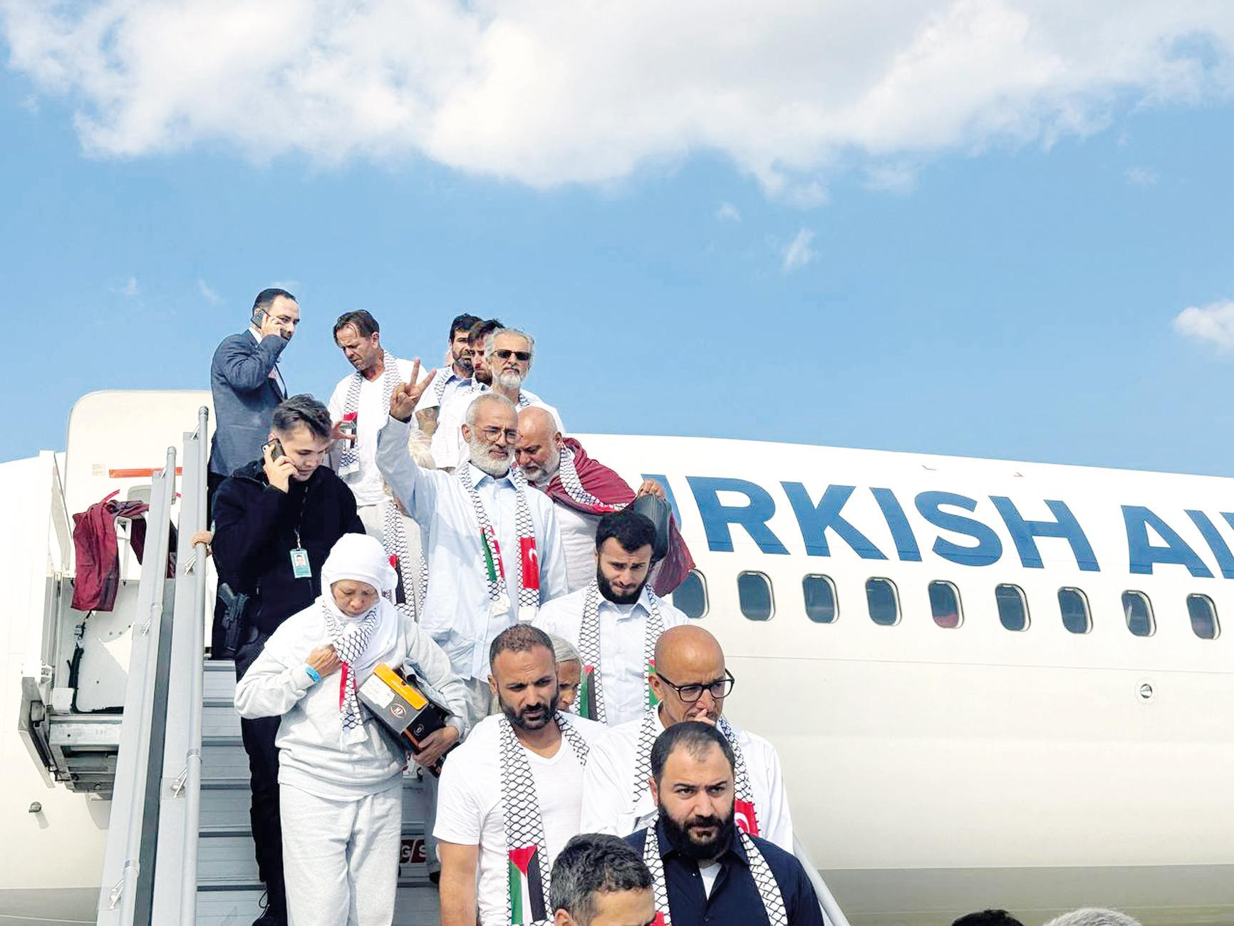 SUMUD Filosu’nun ardından Gazze’ye yardım için yola çıkan, Vicdan’ın amiral gemisi olduğu Özgürlük Filosu, İsrail tarafından uluslararası sularda engellenmişti. İsrail’in alıkoyduğu filodaki aktivistlerin tahliyesi için Ürdün’den özel seferle havalanan THY uçağı, dün İstanbul Havalimanı’na ulaştı. Özgürlük Filosu Koalisyonu’na ait teknelerde yer alan 18’i Türk, 76’sı yabancı uyruklu toplam 94 aktivist, İstanbul Havalimanı VIP Salonu’nda aileleri, bazı yetkililer ve çok sayıda vatandaş tarafından karşılandı. Apronda, TBMM Türkiye-Filistin Parlamentolar Arası Dostluk Grubu Başkanı ve AK Parti İstanbul Milletvekili Hasan Turan, AK Parti İstanbul İl Başkanı Abdullah Özdemir ve THY yetkilileri tarafından çiçeklerle karşılanan aktivistler, otobüsle havalimanı önüne götürüldü.