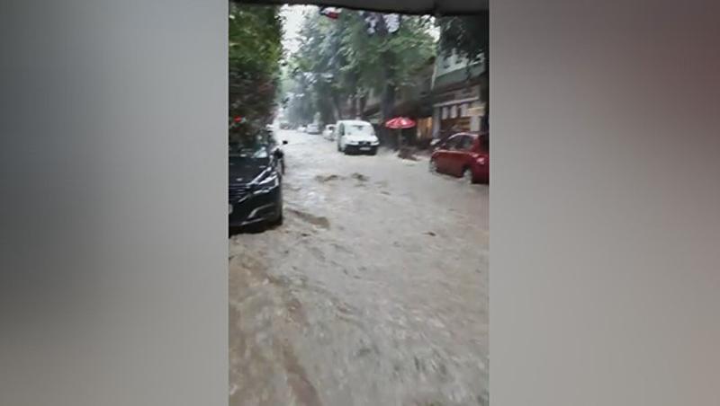Üsküdar'da çekildiği belirtilen ve DHA whatsapp hattına ulaştırılan görüntüde su dolan yolda bir kişinin yüzerek işyerine ulaşmaya çalıştığı görülüyor.