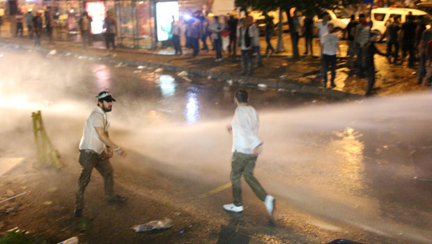Saat 02.30'da da kalabalığın içinden bir kaç kişi İsrail Başkonsolosluğu'nun bulunduğu binanın duvarına tırmandı; binanın camlarını kırdı. Bazı göstericiler de binanın dış kapısını kırarak içeri girmeye çalıştı. Bunun üzerine konsolosluk çevresinde önlem alan çevik kuvvet ekipleri, kalabalığa biber gazı, tazyikli su ve boyalı mermi ile müdahalede bulundu. Müdahale sonrası göstericilerden bir kaçı, polislerin bulunduğu alana taş attı. Gerginlik bir süre sonra da sona erdi.