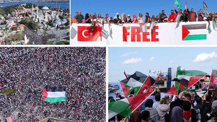 İstanbul'da gerçekleşen 'Filistin'e destek' gösterisinde binlerce vatandaş Ayasofya çevresinde toplandı.